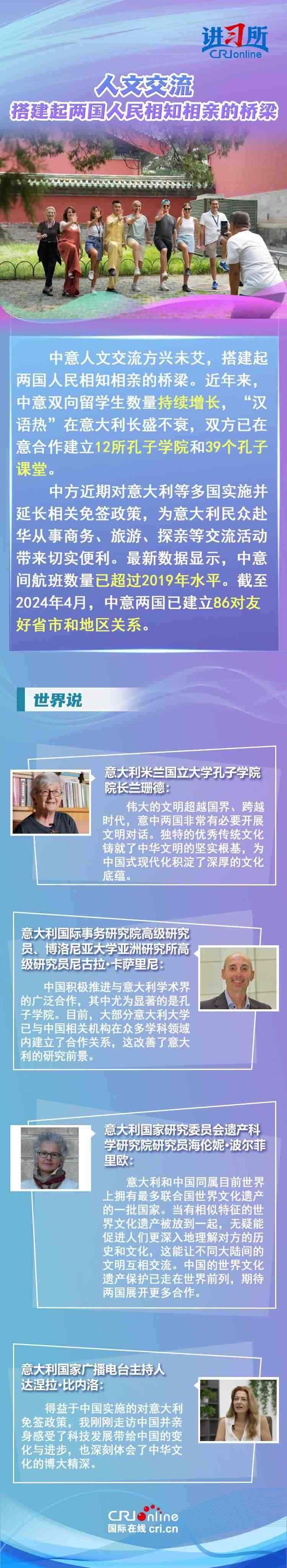 梅洛尼表示,中國(guó)對(duì)意大利而言是一個(gè)極為重要的經(jīng)貿(mào)和文化合作伙伴。意大利各界人士認(rèn)為,中意并肩同行會(huì)創(chuàng)造更多的經(jīng)濟(jì)奇跡,同時(shí)兩國(guó)非常有必要開(kāi)展文明對(duì)話,期待未來(lái)兩國(guó)展開(kāi)更多領(lǐng)域合作,開(kāi)啟全面戰(zhàn)略伙伴關(guān)系新階段。