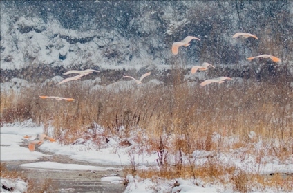 2018年1月27日,在陜西省銅川市耀州區(qū)山區(qū)內(nèi)拍攝的野生朱鹮。新華社發(fā)(石銅剛 攝)