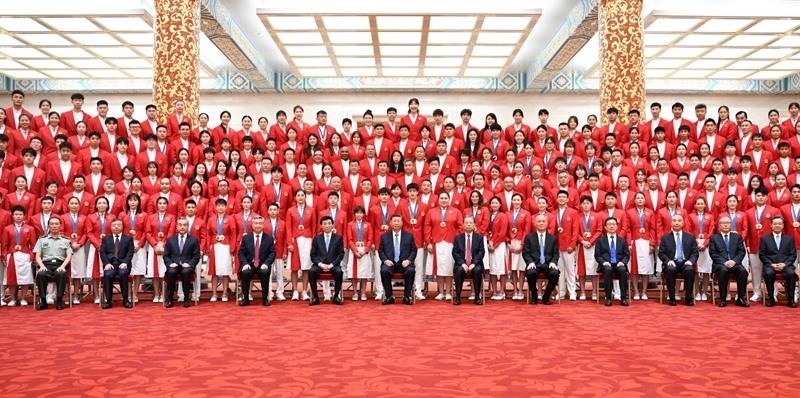 △8月20日,習近平總書記在人民大會堂接見第33屆夏季奧林匹克運動會中國體育代表團全體成員。