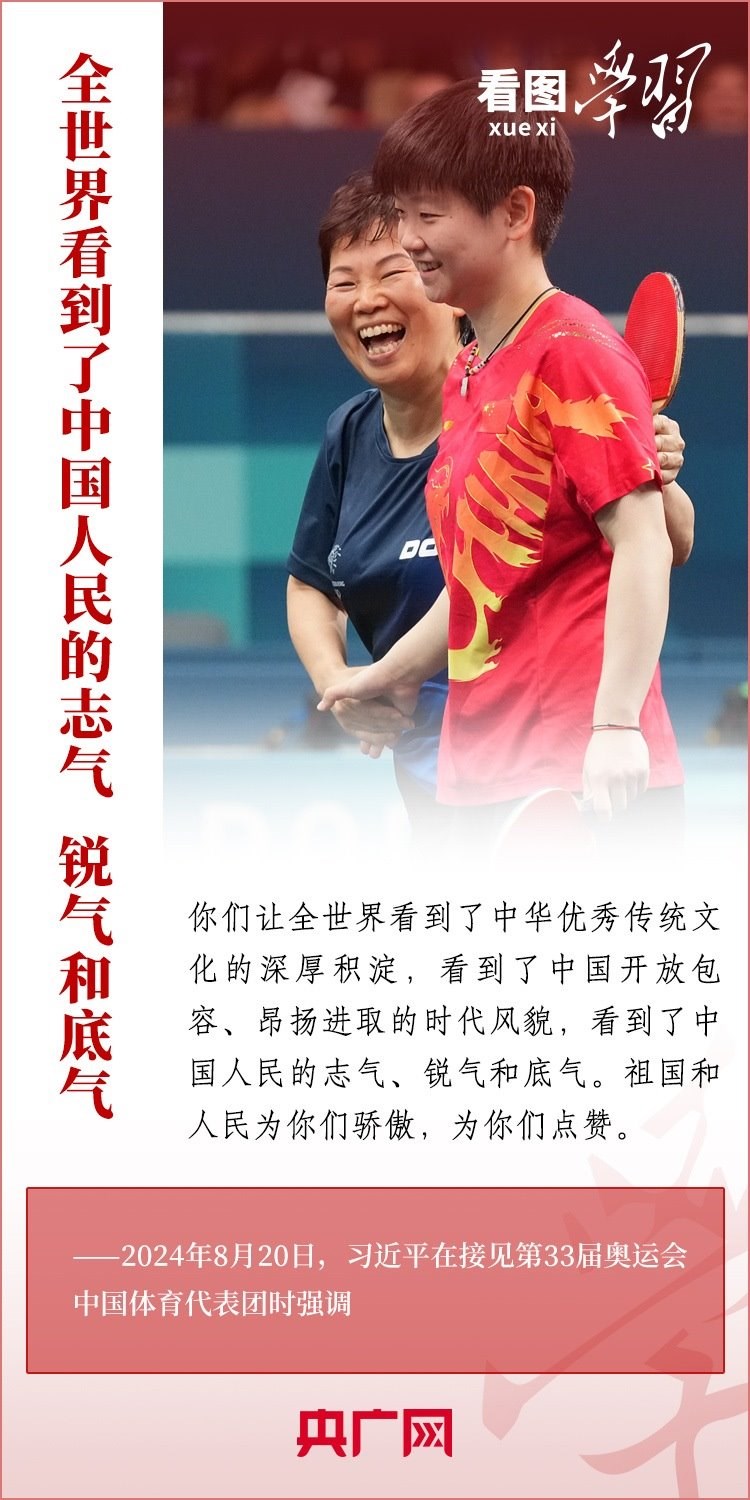 “祖國和人民為你們驕傲,為你們點贊?!?月20日,習近平總書記在人民大會堂接見第33屆奧運會中國體育代表團并發(fā)表重要講話??倳浉叨瓤隙ㄖ袊w育代表團取得的優(yōu)異成績,贊揚他們充分彰顯了新時代中國力量、生動詮釋了新時代中國精神、充分展現(xiàn)了新時代中國形象,勉勵大家戒驕戒躁、再接再厲,為建設體育強國再立新功。一起來學習!