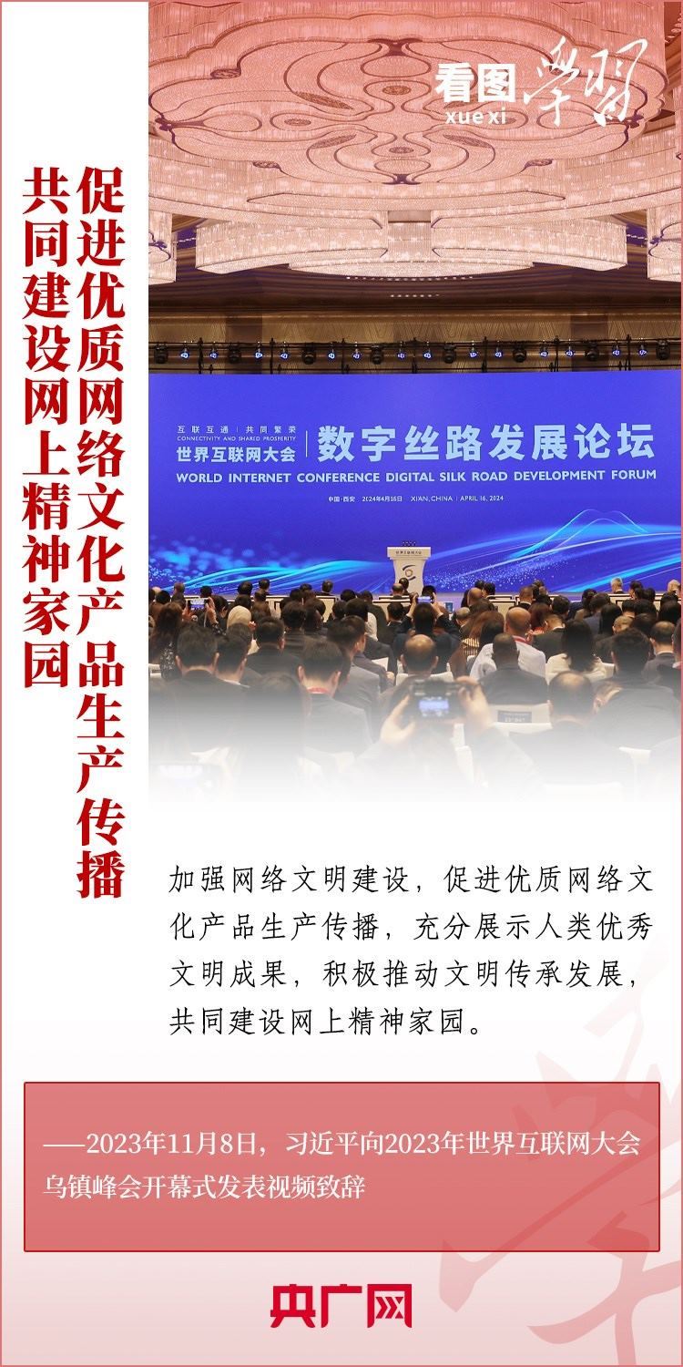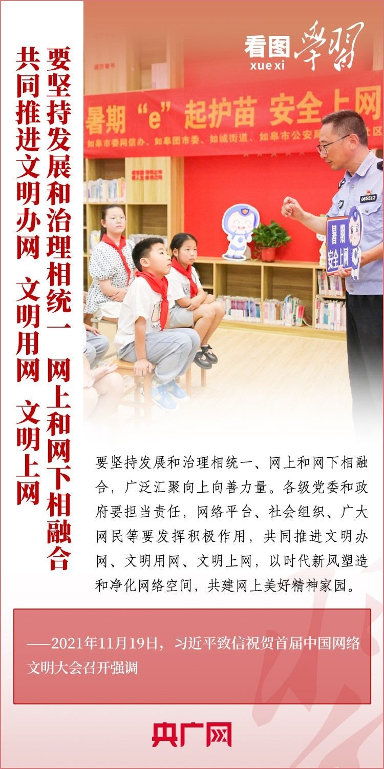 “堅持發(fā)展和治理相統(tǒng)一、網(wǎng)上和網(wǎng)下相融合,廣泛匯聚向上向善力量”“共建網(wǎng)上美好精神家園”。習近平總書記格外重視網(wǎng)絡空間這一億萬民眾共同精神家園的建設,圍繞網(wǎng)絡文化和網(wǎng)絡強國建設作出了一系列重要深刻論述。