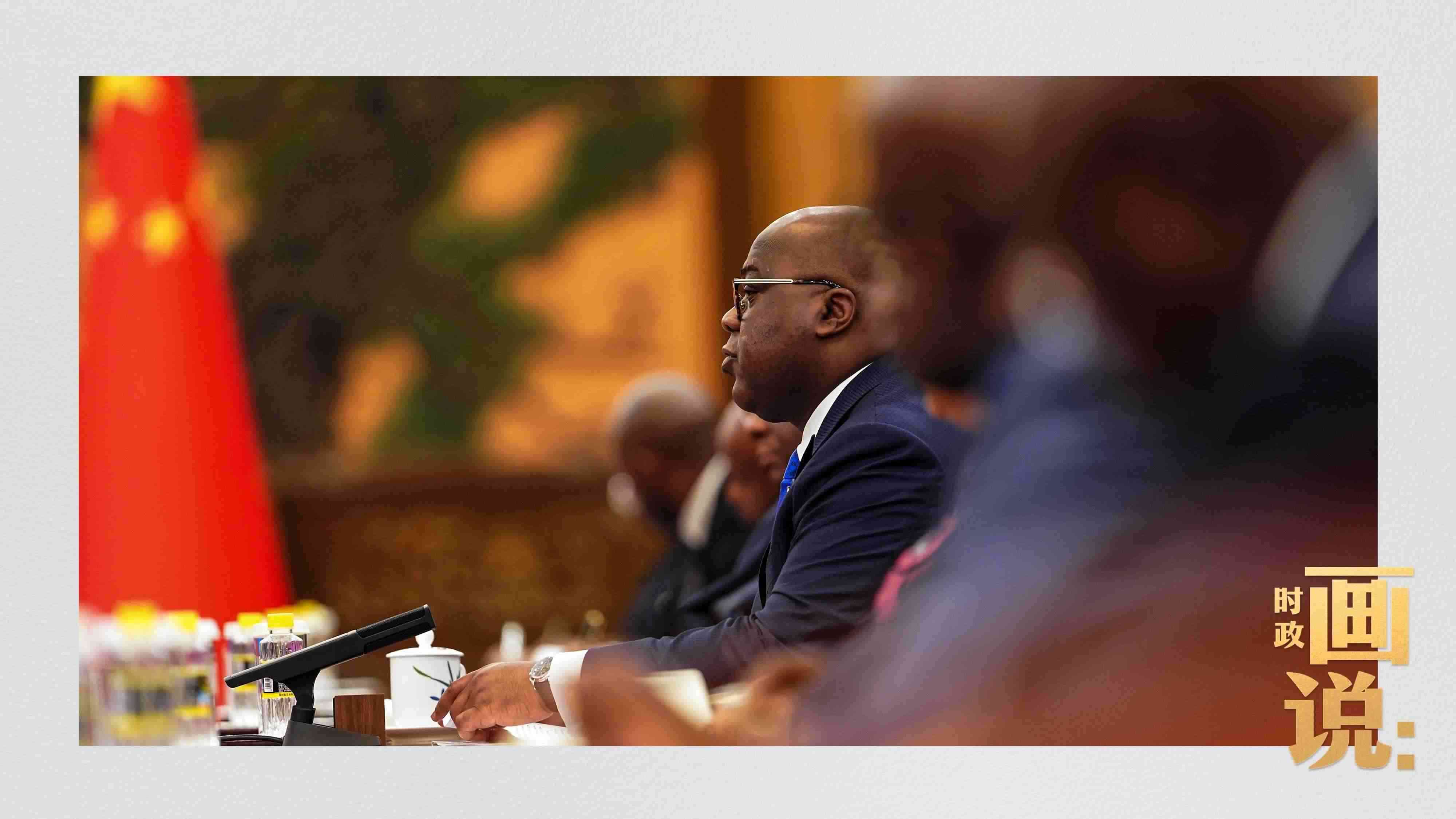 △剛果(金)總統(tǒng)齊塞克迪走向會見廳,這是習近平主席在峰會期間舉行的首場雙邊會見。