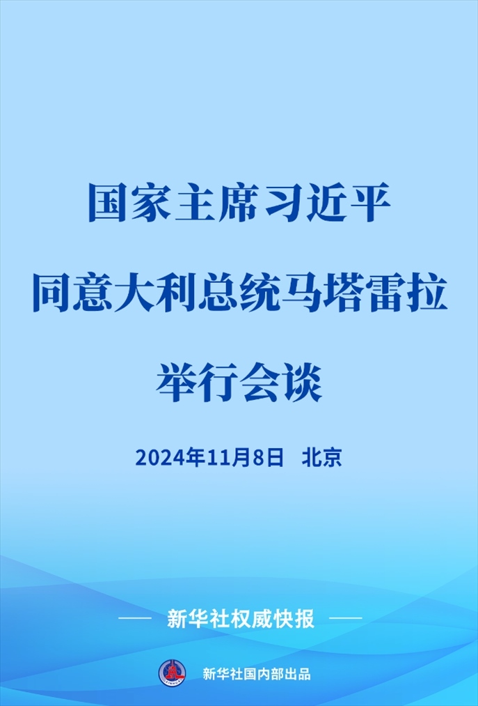 11月8日下午,國家主席習(xí)近平在北京人民大會(huì)堂同來華進(jìn)行國事訪問的意大利總統(tǒng)馬塔雷拉舉行會(huì)談。