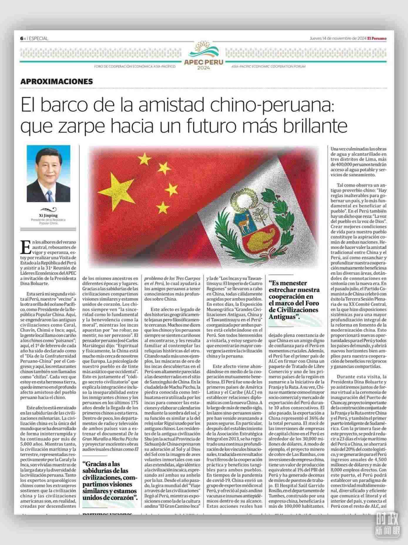 △習(xí)主席在《秘魯人報》發(fā)表題為《讓中秘友好之船揚(yáng)帆遠(yuǎn)航》的署名文章。(總臺國廣記者吳倩)