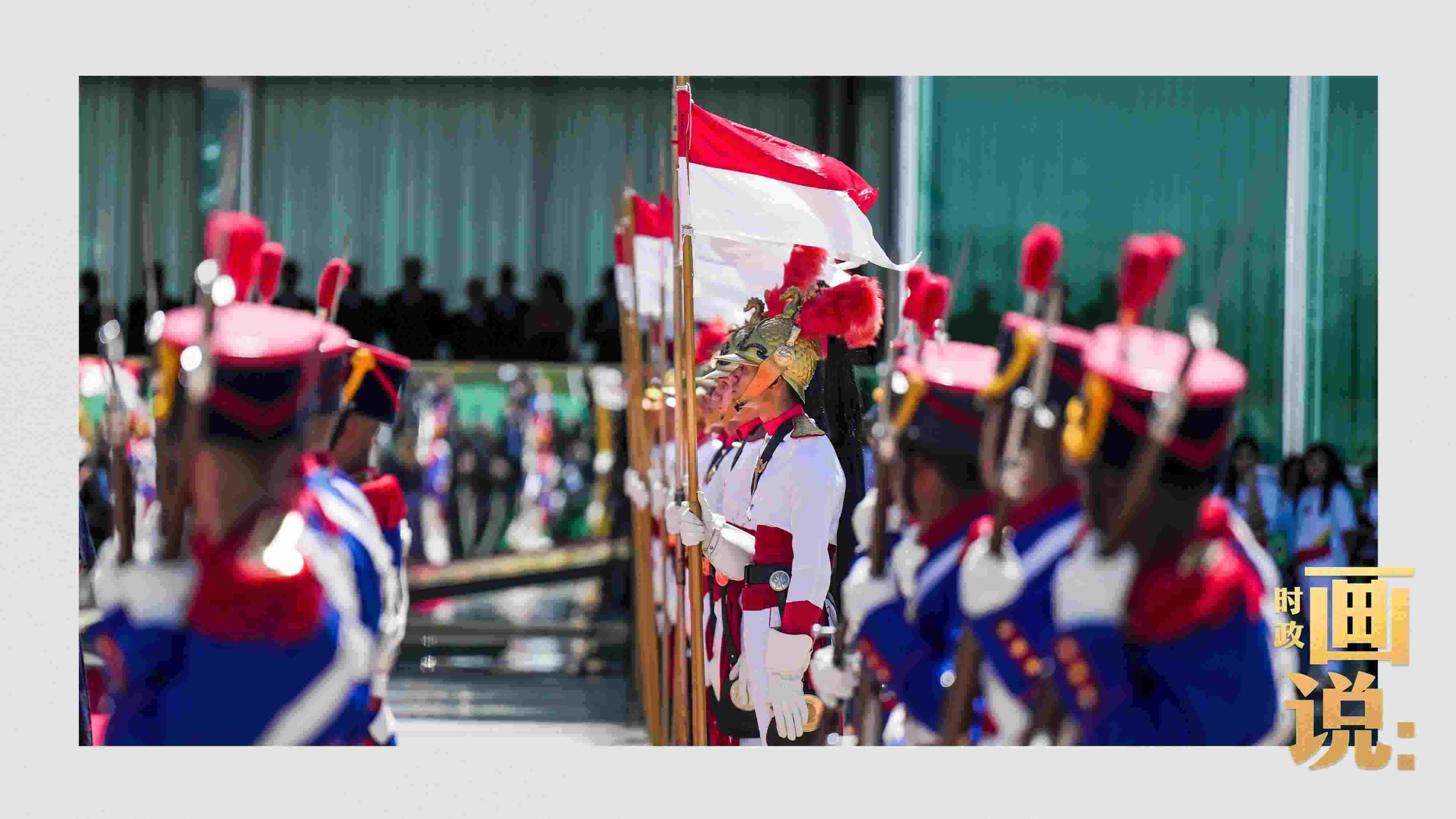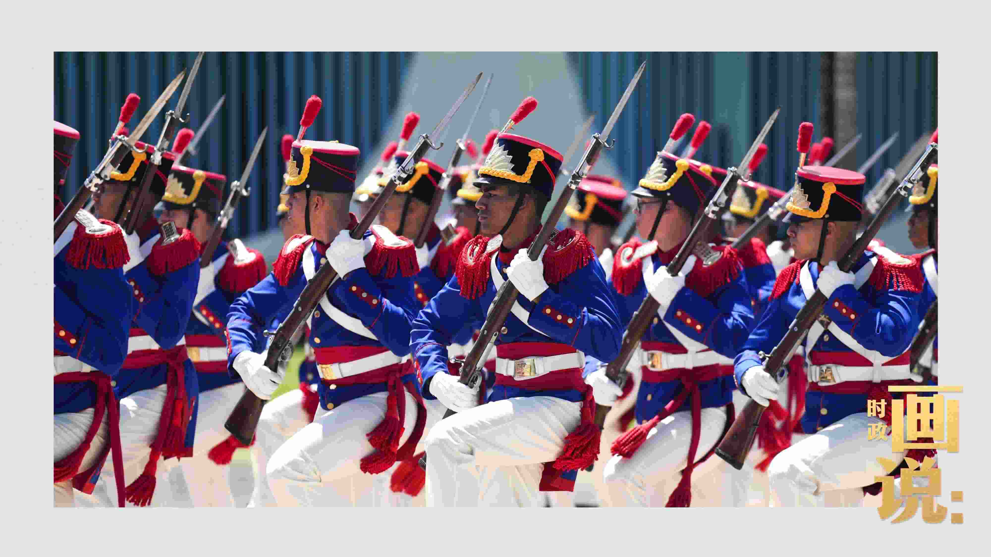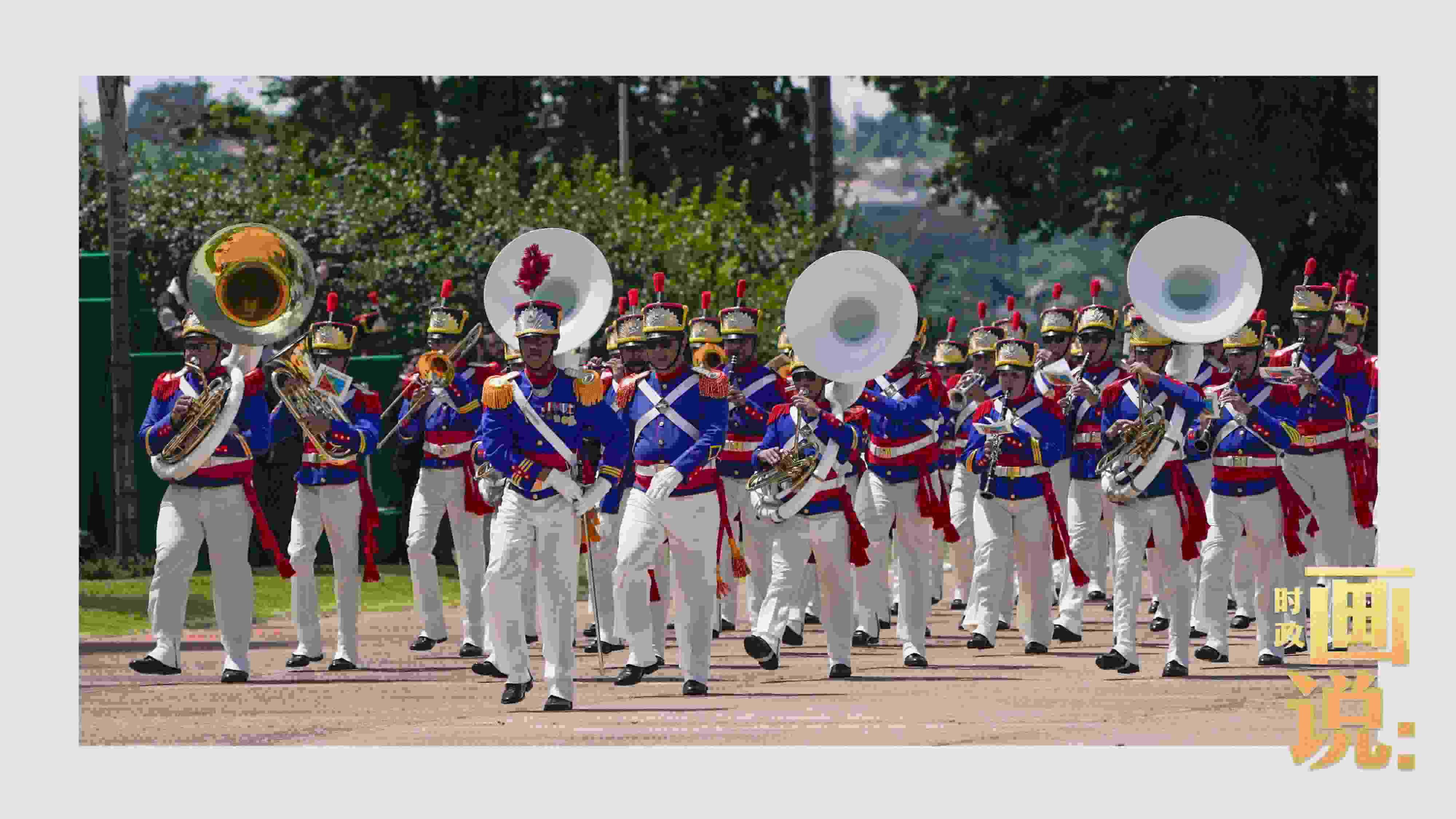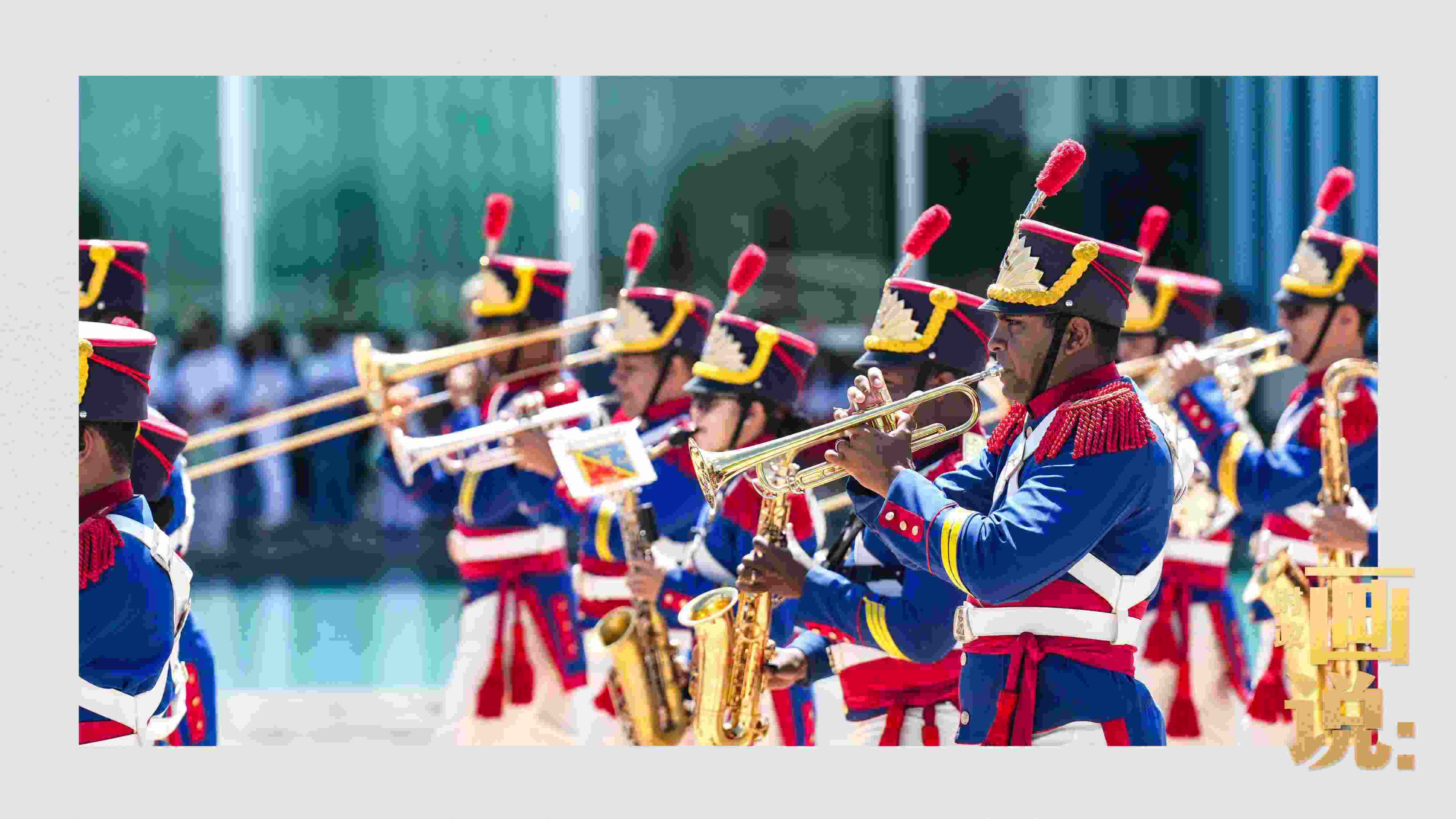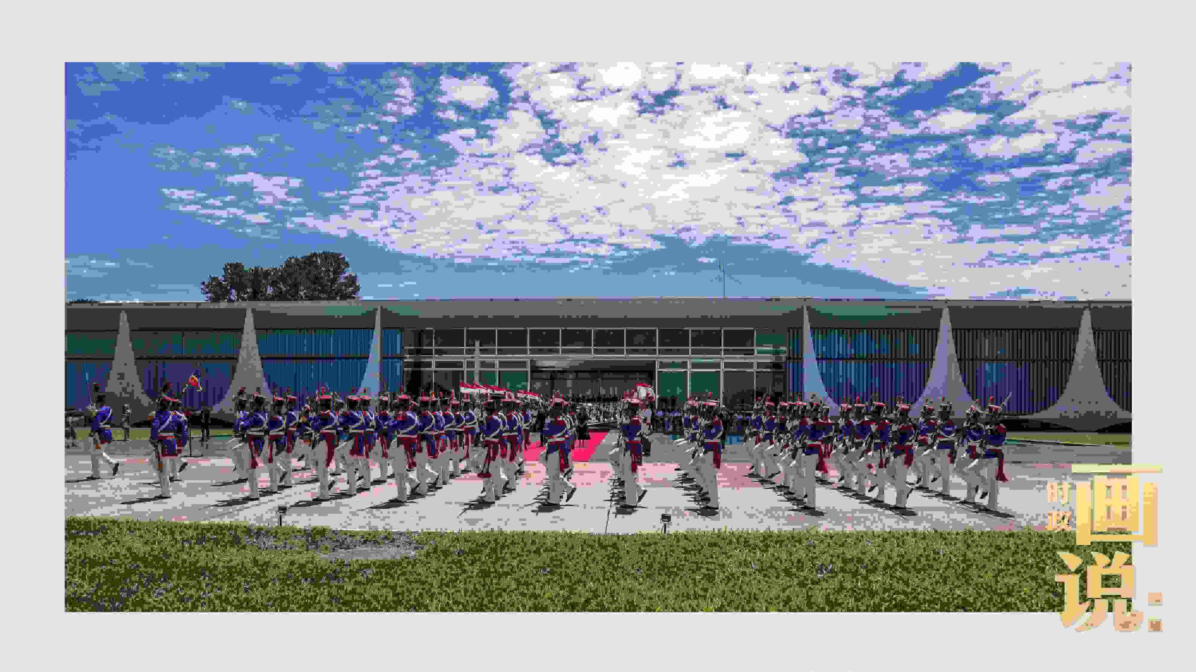 騎兵護衛(wèi)習(xí)近平主席專車抵達儀式現(xiàn)場,巴西藝術(shù)家用中文深情唱響中國經(jīng)典民歌《我的祖國》,現(xiàn)場氣氛隆重?zé)崃摇?/p>