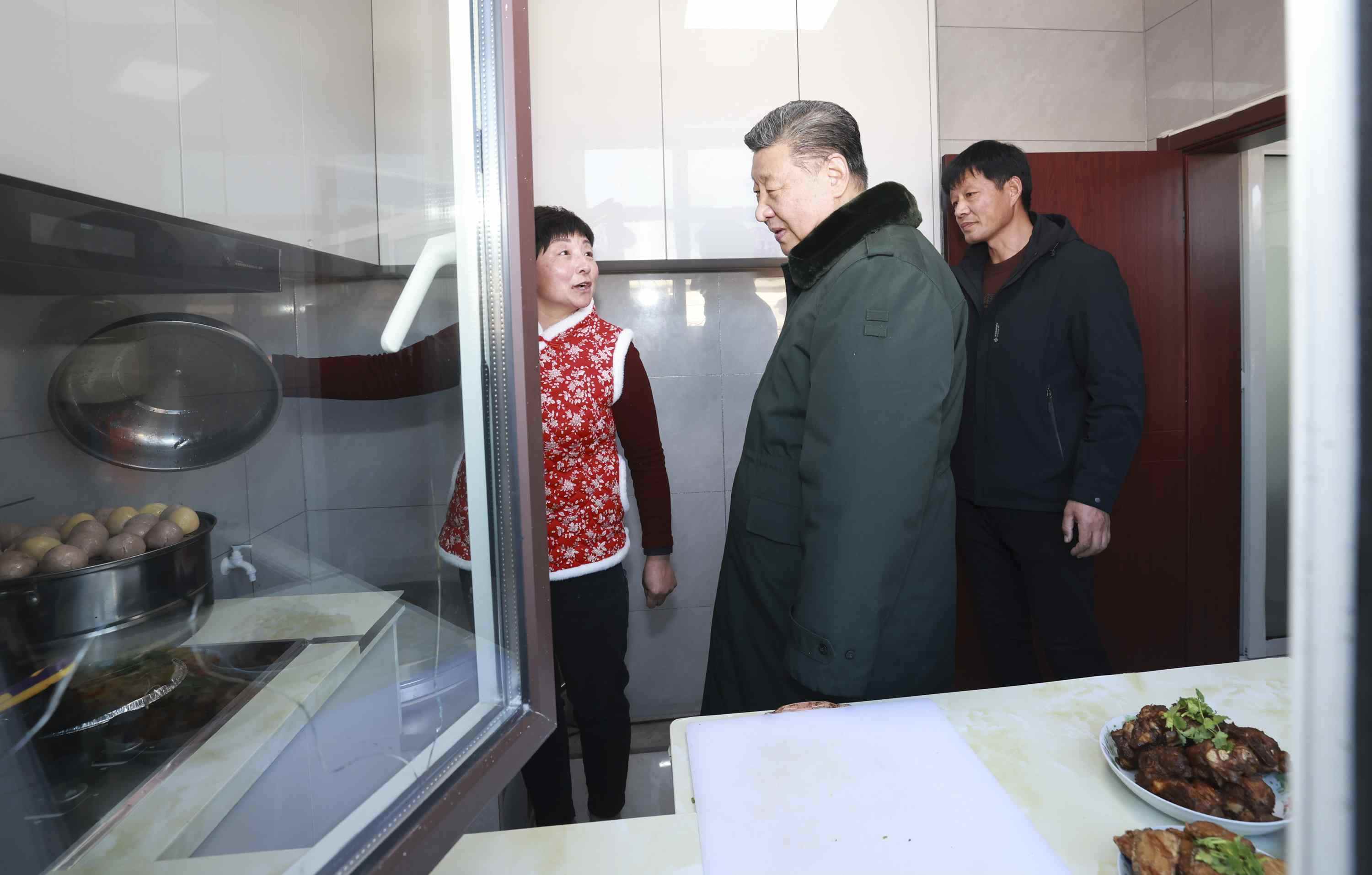 22日下午,習(xí)近平總書記冒著嚴(yán)寒來到遼寧省葫蘆島市綏中縣明水滿族鄉(xiāng)祝家溝村看望慰問受災(zāi)群眾,實地察看去年洪澇災(zāi)害后當(dāng)?shù)鼗謴?fù)重建情況,走進入冬前搬入新居的村民家中,了解重建房屋質(zhì)量、日常生活保障等情況。(杜尚澤)