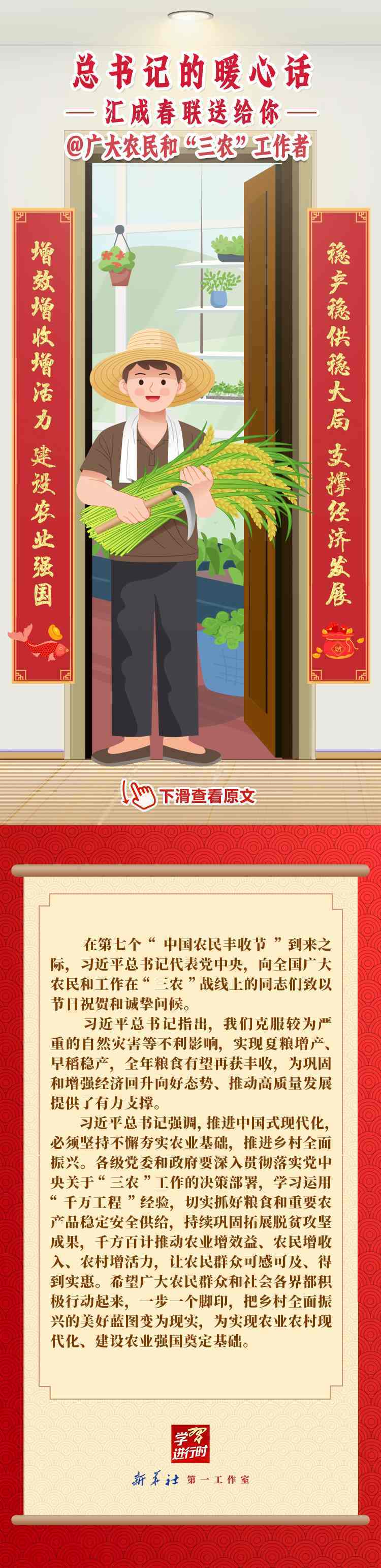【學(xué)習(xí)進(jìn)行時(shí)】過春節(jié),貼春聯(lián),寄托人們對(duì)新年的美好愿望。過去一年,習(xí)近平總書記在不同場(chǎng)合點(diǎn)贊各行各業(yè)奮斗者,說了許多暖心話。新春之際,我們匯編成聯(lián),向新征程上的每一位“主角”致敬,送上新春的祝福。