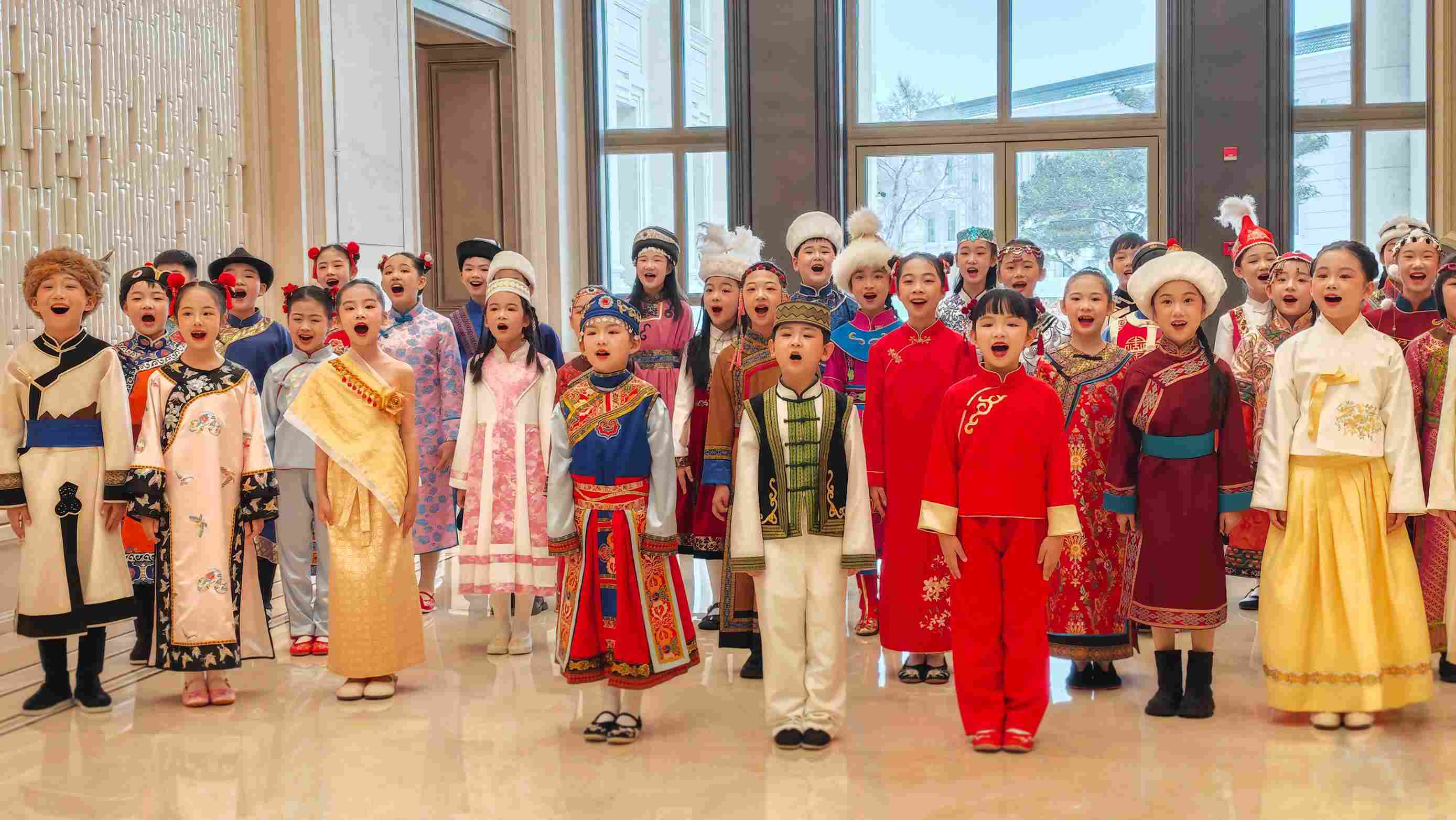 △第九屆亞冬會開幕式歡迎宴會現場,少年兒童表演民歌《烏蘇里船歌》。