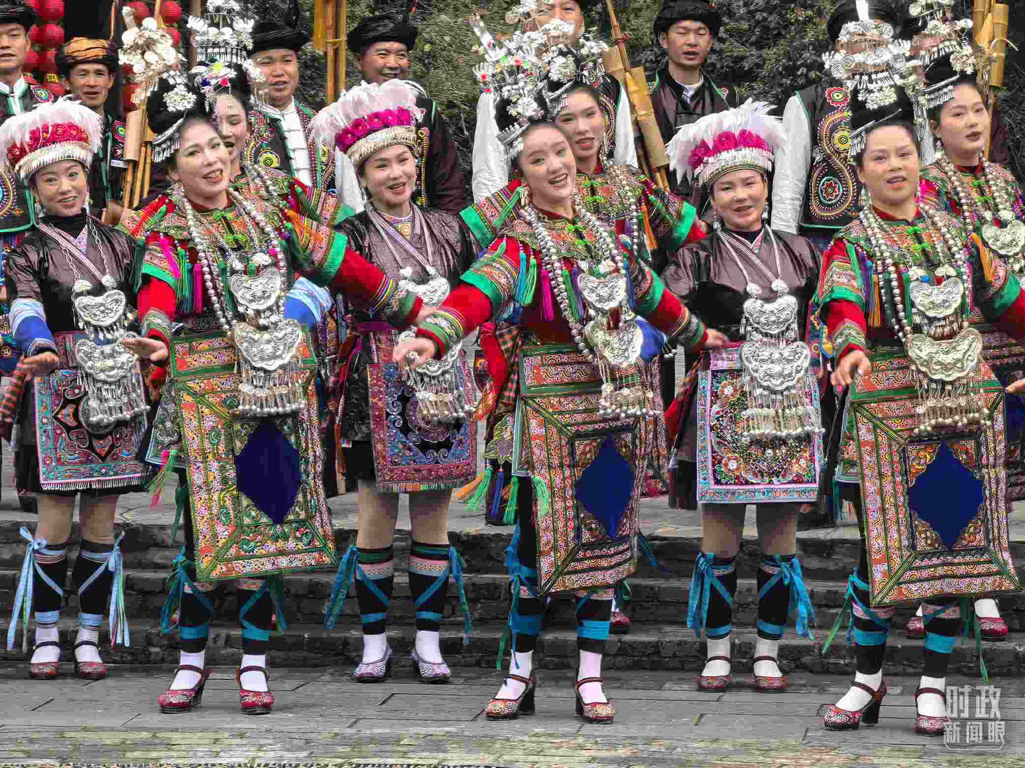 △正在演唱侗族大歌的侗族群眾。(總臺(tái)央視記者史偉拍攝)