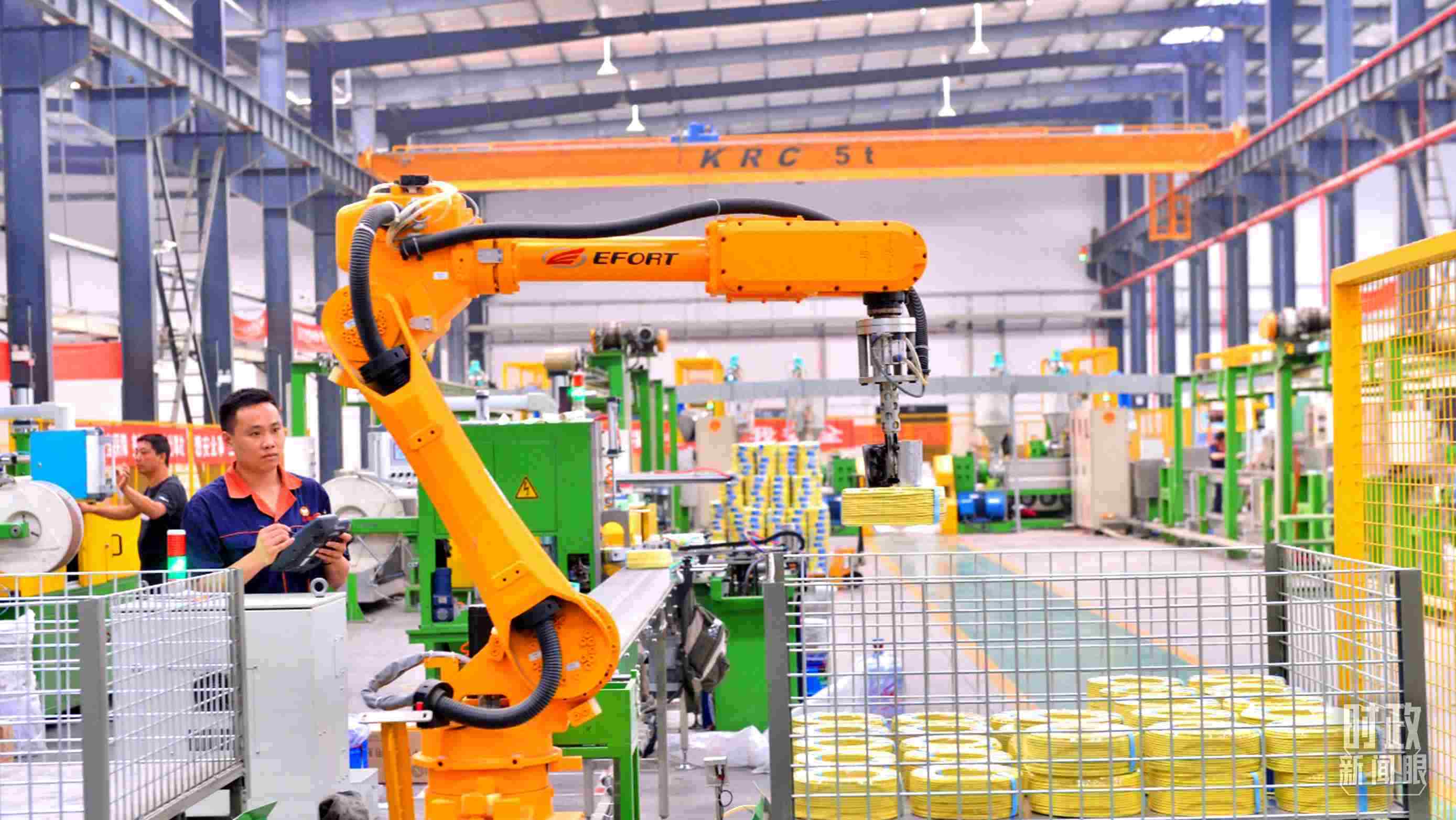 △貴州省貴陽(yáng)市一家電線電纜企業(yè)的智能制造及智能倉(cāng)儲(chǔ)一體化車(chē)間。(總臺(tái)記者張秀練拍攝)