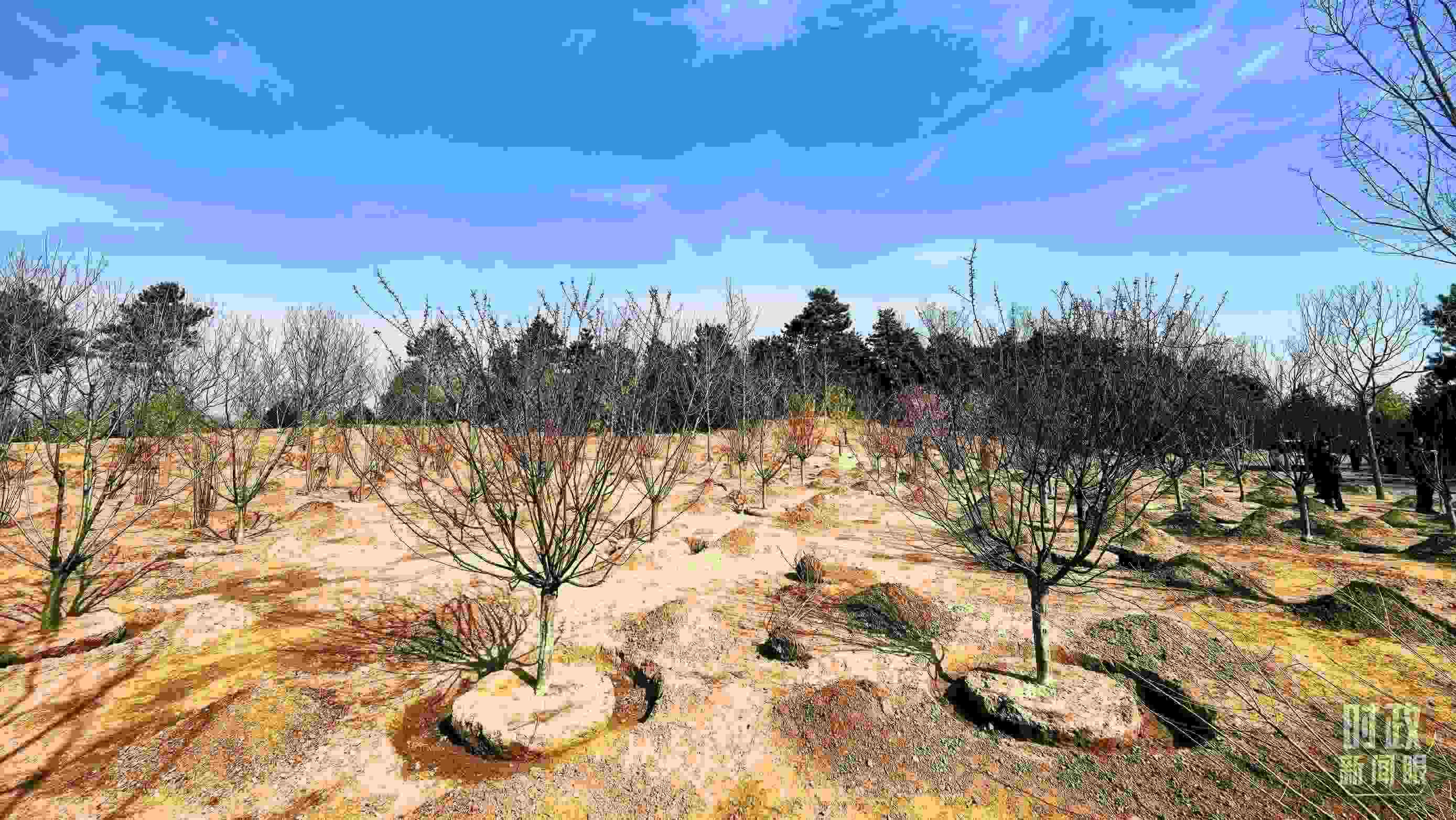 △永定河畔植樹點,春意上枝頭。(總臺央視記者胡瑋、程鋮拍攝)
