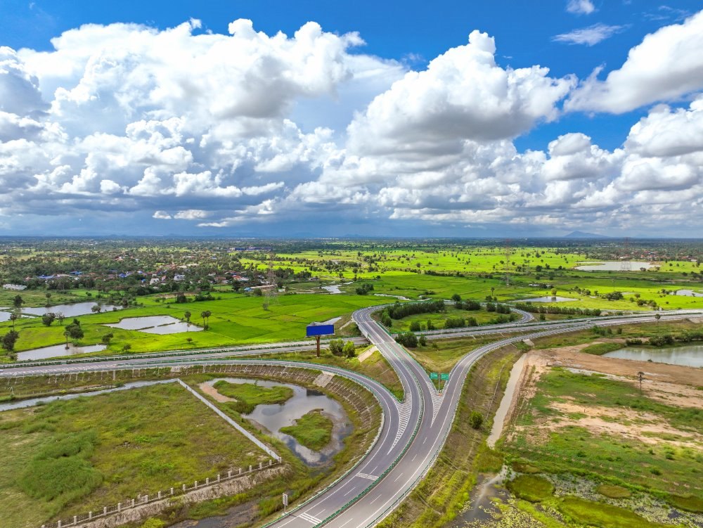 這是2024年9月25日在柬埔寨磅士卑省拍攝的金港高速公路(無人機(jī)照片)。金港高速公路是中國路橋工程有限責(zé)任公司(中國路橋)按“建造-運(yùn)營-移交”模式投資的項(xiàng)目。新華社發(fā)(柬埔寨金港高速公路有限公司供圖)
