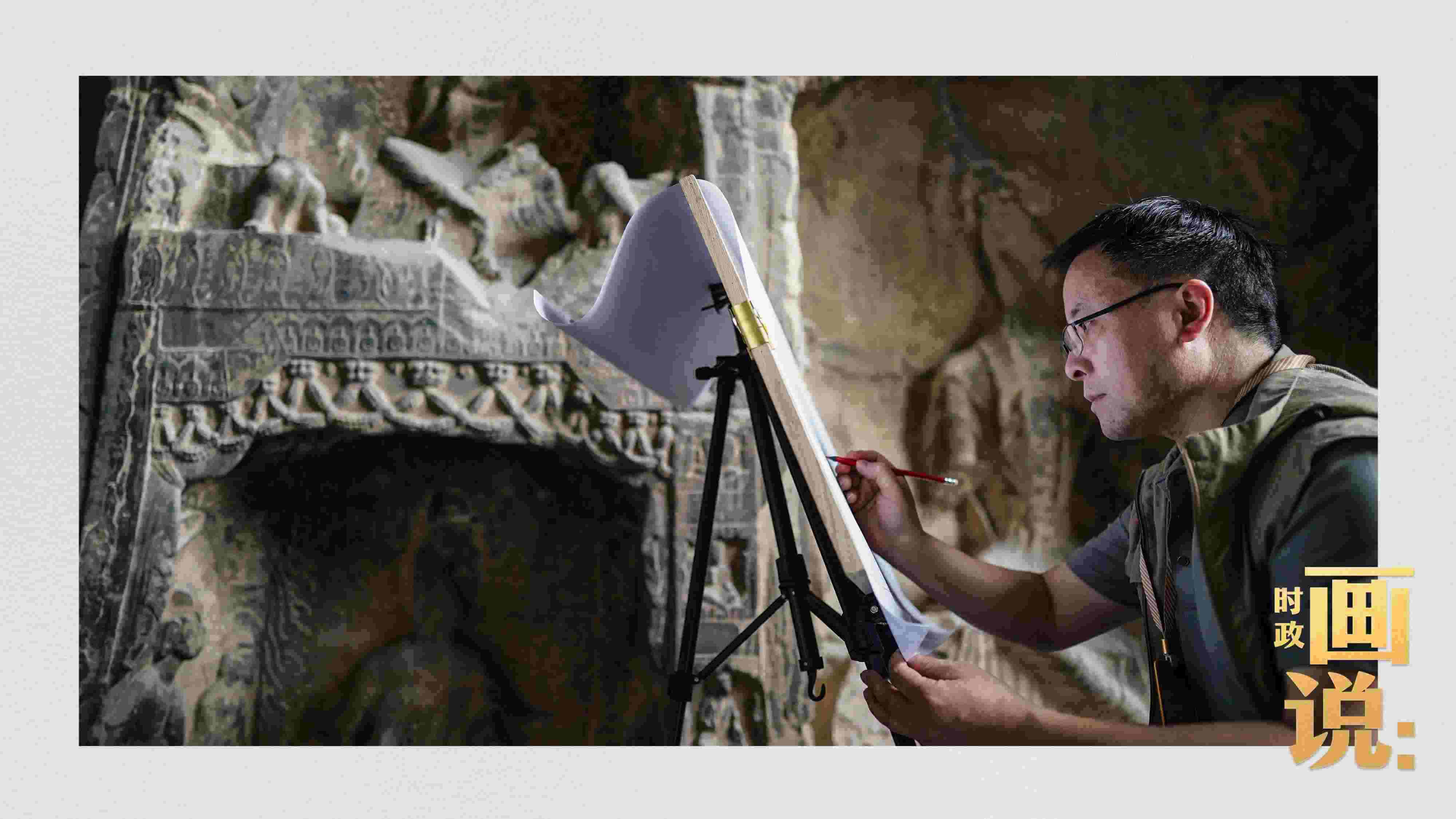 △工作人員在對石刻病害情況進行詳細記錄