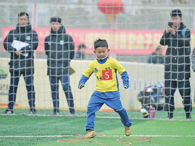 連續(xù)兩天的雨雪天氣沒有澆熄孩子們的熱情,球場上一群六七歲的小朋友努力奔跑著。日前,在呼和浩特市賽罕區(qū)全民健身中心、新城區(qū)成吉思汗街小學、玉泉區(qū)通順街小學、賽罕區(qū)騰飛路小學4個地點進行了呼和浩特市2011—2012年齡段男子足球隊員的選拔。孩子們雖然動作稚嫩、但個個都表情認真,全力以赴地進行著測試。