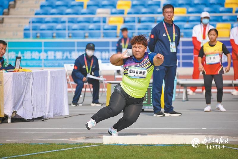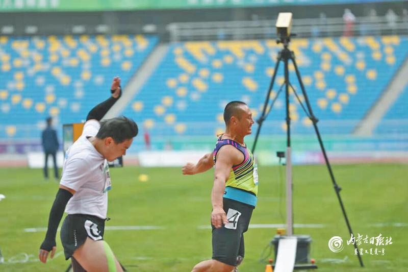 10月28日,內(nèi)蒙古代表團(tuán)旗手高永強(qiáng)在男子鏈球聽障決賽場上6 次投擲4 次打破全國紀(jì)錄,以絕對優(yōu)勢獲得金牌。