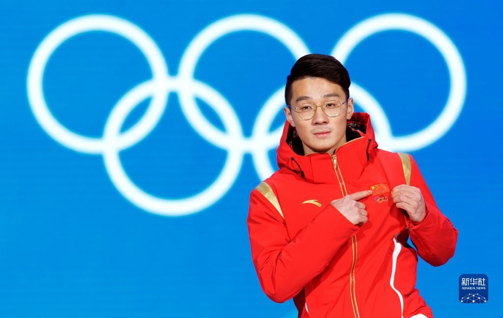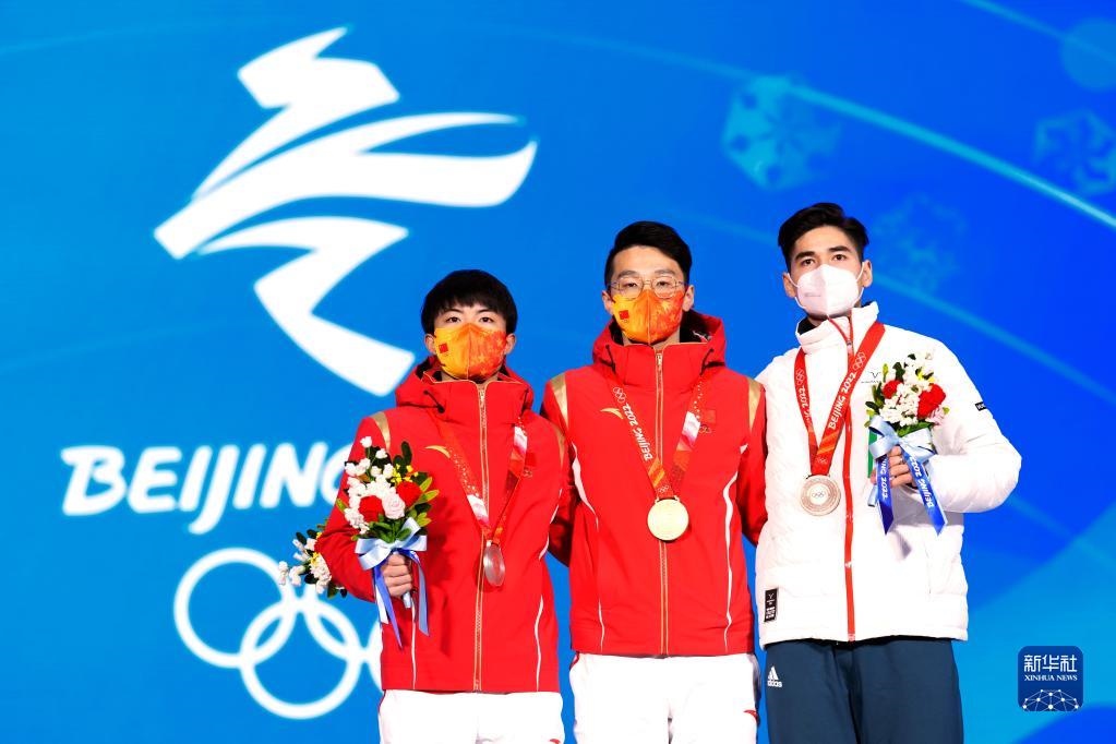 當日,北京2022年冬奧會短道速滑男子1000米獎牌頒發(fā)儀式在北京賽區(qū)頒獎廣場舉行。