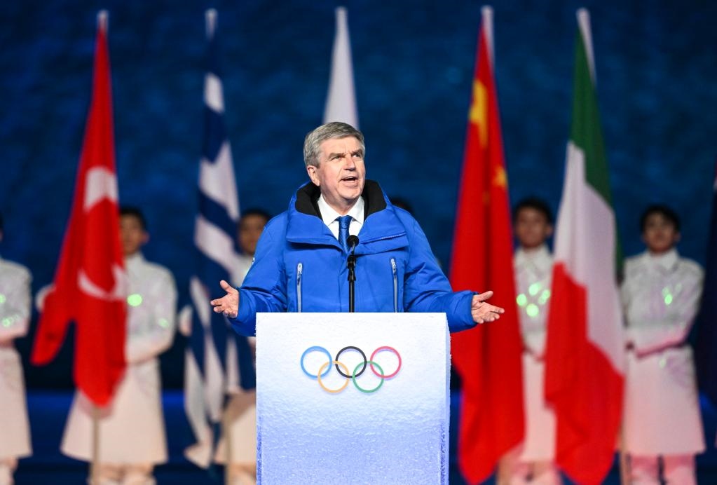 2月20日晚,北京第二十四屆冬季奧林匹克運(yùn)動(dòng)會(huì)閉幕式在國家體育場舉行。這是國際奧委會(huì)主席巴赫致辭。新華社記者李尕?cái)z