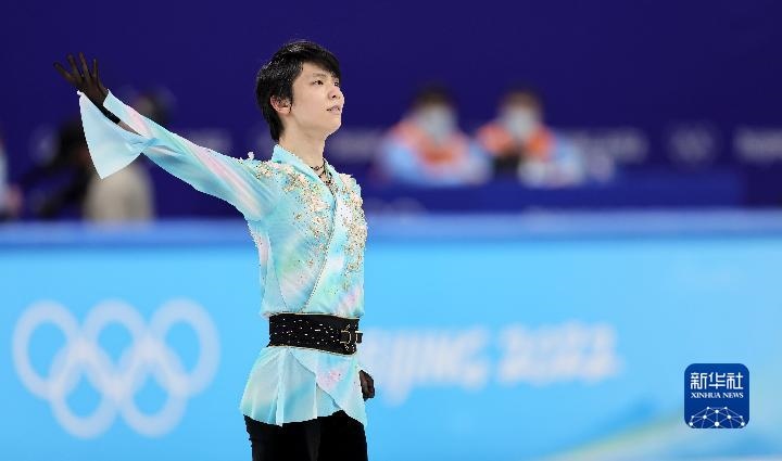 2月10日,日本隊(duì)選手羽生結(jié)弦在花樣滑冰男單自由滑比賽中。新華社記者蘭紅光攝