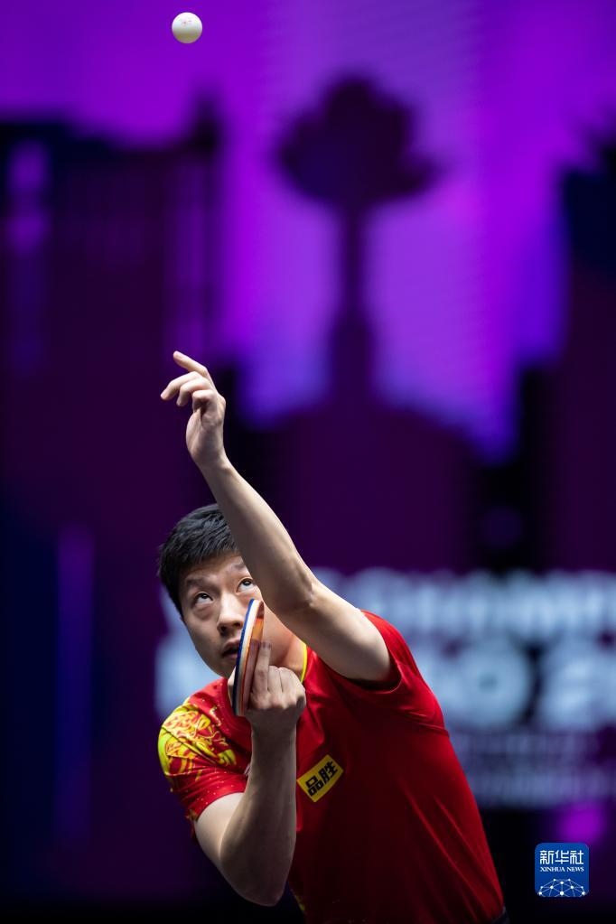 10月19日,馬龍在比賽中發(fā)球。新華社記者 張金加 攝