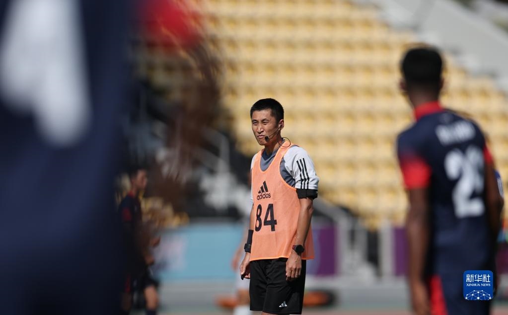 11月18日,中國裁判馬寧(右一)在訓(xùn)練中。新華社記者 賈浩成 攝
