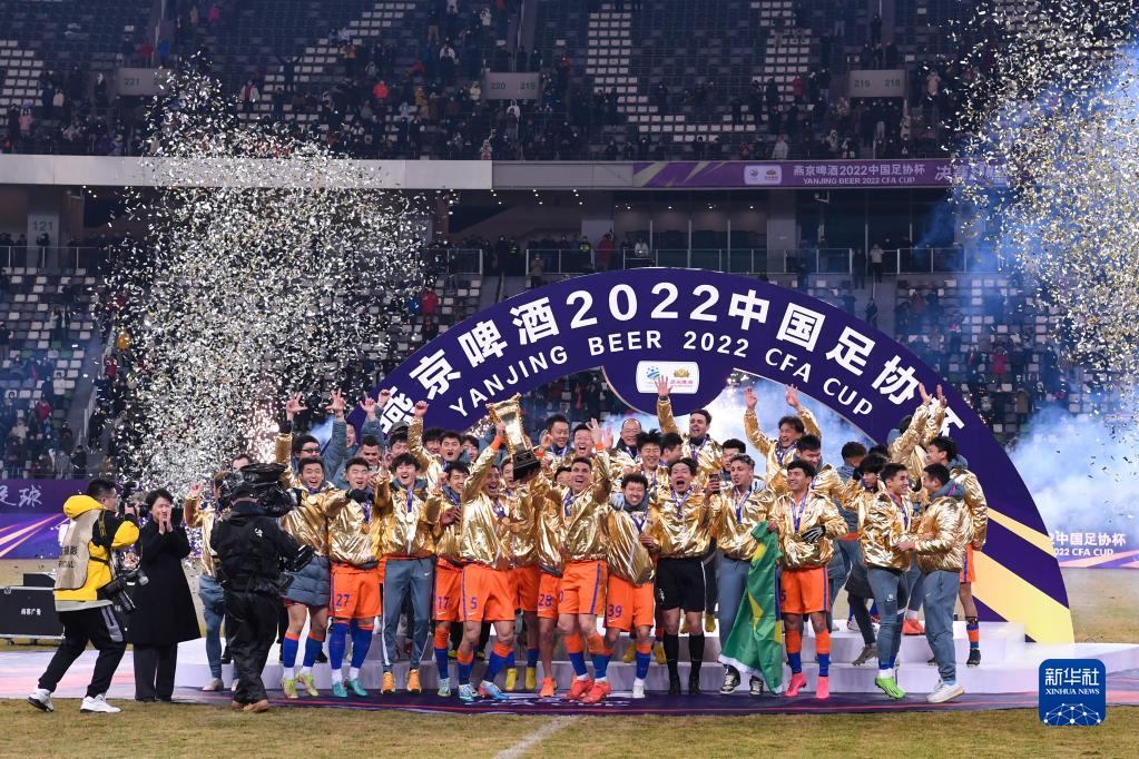 當(dāng)日,在江蘇蘇州舉行的2022中國(guó)足協(xié)杯決賽中,山東泰山隊(duì)以2比1戰(zhàn)勝浙江隊(duì),奪得冠軍。