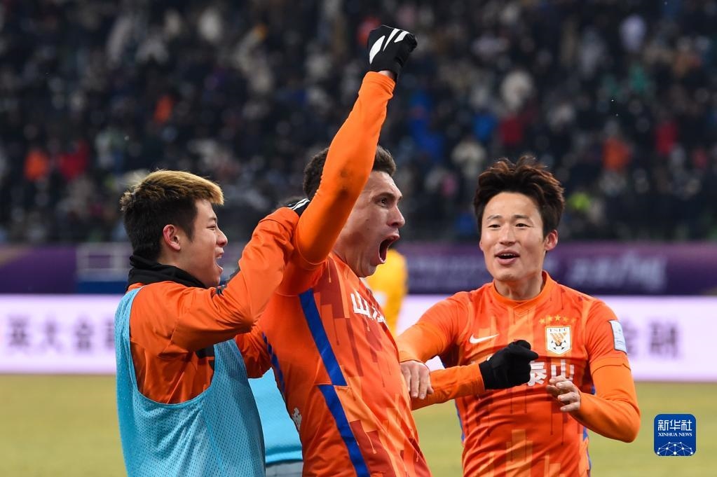 1月15日,山東泰山隊(duì)在頒獎(jiǎng)儀式上慶祝。