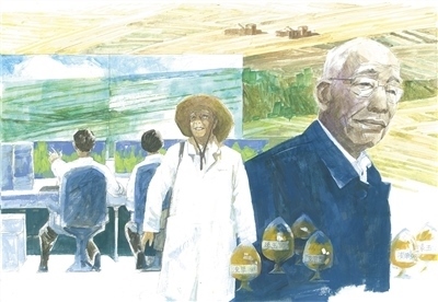 (六)如今,八畝薄田已發(fā)展為一百四十畝標(biāo)準(zhǔn)化玉米育種基地,通過實(shí)時(shí)監(jiān)控系統(tǒng),科技人員在鶴壁也可以指導(dǎo)海南育種基地種植。八十七歲的程相文依然常在玉米地里一待就是大半天?!耙涣7N子可以改變一個(gè)世界。希望再為農(nóng)民多培育出幾個(gè)好品種?!彼f。