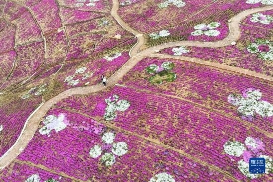 近日,河北省遷西縣舊城鄉(xiāng)北孫家峪村大黑汀水庫東岸500多畝芝櫻競相綻放,吸引游客前來賞花游玩。