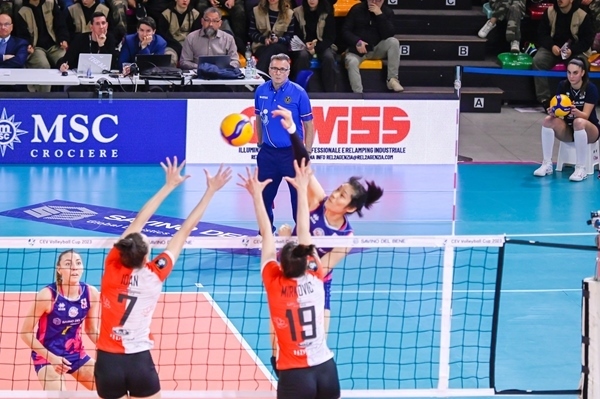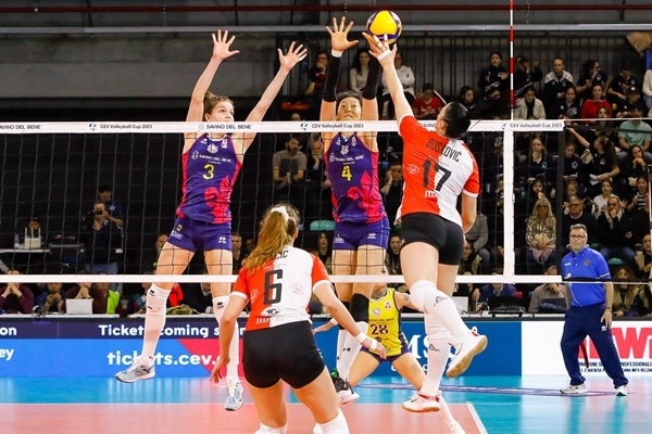 朱婷(4號)與貝麗恩攔網。圖片來源:歐聯(lián)杯官網