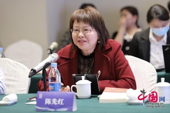華中科技大學中國故事創(chuàng)意傳播研究院院長陳先紅作主題演講。中國網 夢恬 攝