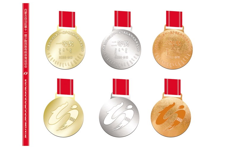 7月15日,記者從赤峰市民委獲悉,內(nèi)蒙古自治區(qū)第十一屆少數(shù)民族傳統(tǒng)體育運動會獎牌正式亮相。獎牌以本屆運動會會徽“奮進”為主基調(diào)進行設計,一面刻印會徽“奮進”圖案,一面鐫刻“內(nèi)蒙古自治區(qū)第十一屆少數(shù)民族傳統(tǒng)體育運動會”“2025?赤峰”和獲獎名次,既有本屆運動會“l(fā)ogo”形象,又明確運動會屆次、舉辦時間及地點,也寓意踐行“更快、更高、更強、更團結(jié)”的體育運動精神。(記者 肖璐)