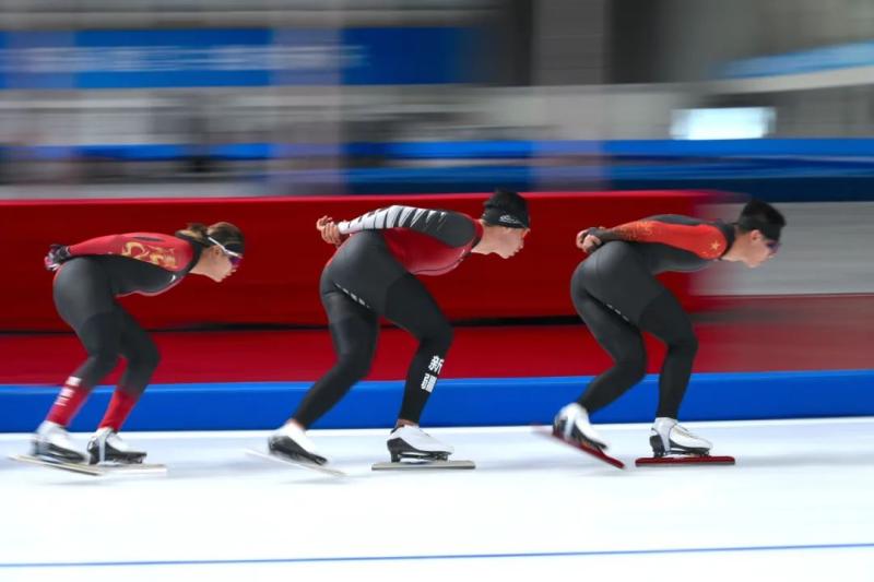 這支由各省市精英組成的隊伍,年齡跨度從17歲到30歲左右,每個人的履歷都寫滿賽場榮光。他們肩負著為國家爭光的使命,懷揣著對冰雪運動的熱愛,在呼倫貝爾這片運動場上拼盡全力。而武大靖的轉型,更是為這支隊伍增添了厚重的使命感。從短道速滑到速度滑冰,對這位老將而言是不小的挑戰(zhàn)?!跋热〉眠M入米蘭的資格是關鍵,一步一個腳印,只要努力到位,站在賽場上就已經成功了一半。”武大靖說,“在這可以看到很多優(yōu)秀的小朋友們,也是內蒙古的后備人才,一起在這進行訓練,能相互交流、共同進步?!庇柧氈?,他一邊打磨新技,一邊為后輩校準動作,冰刀劃出的軌跡里,既有個人突破的執(zhí)著,更有薪火相傳的溫情。