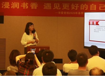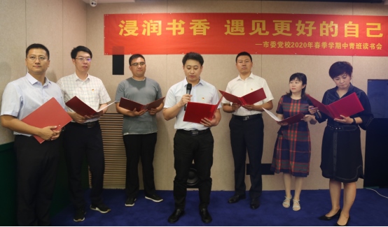中青班班主任文濤老師對讀書會進行了點評,希望大家“好書不厭百回讀,站在不同立場讀書,便會有不同的體會,希望廣大青年干部進一步學習,努力踐行新時代黨員干部的使命,增強服務群眾的本領”。文濤老師以一首詩為讀書會推向高潮,贏得了學員們的陣陣掌聲。