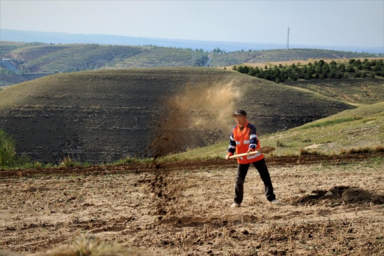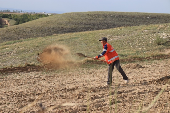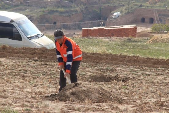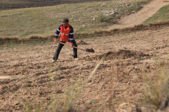 邊墻壕村是個(gè)小村莊,在村口遇見(jiàn)一對(duì)夫婦正在播種,據(jù)介紹全村現(xiàn)有20多戶人家四五十口人,年輕人都出去打工了,剩下些村民老人居多。讓我們?cè)俅伟宴R頭對(duì)準(zhǔn)邊墻下春播的百姓。