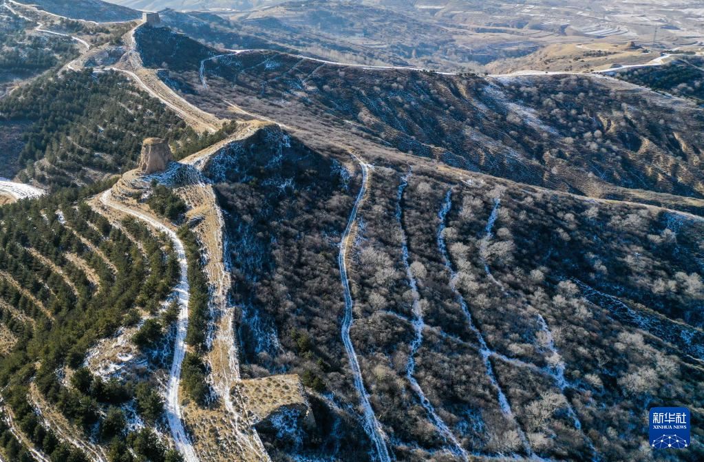 這是1月16日拍攝的內(nèi)蒙古清水河縣栜木塔長(zhǎng)城(無(wú)人機(jī)照片)。