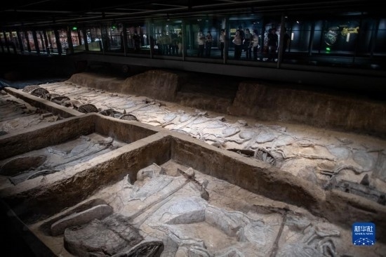 5月20日,在熊家冢國(guó)家考古遺址公園,游客在車(chē)馬坑前參觀。