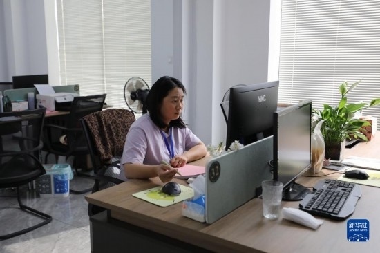 5月23日,在浙江省義烏市李祖村,工作人員在“李祖鄉(xiāng)遇共富工坊”內(nèi)工作。
