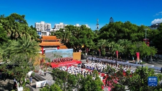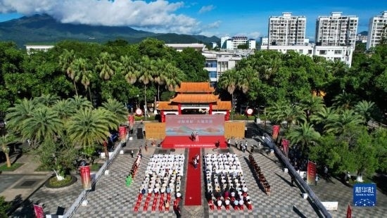 這是7月8日拍攝的五指山“上山爽一夏 故園·畢業(yè)季”暨州府故園文化節(jié)啟動儀式現(xiàn)場(無人機照片)。