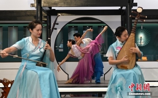 9月1日,表演者演繹中國(guó)傳統(tǒng)器樂(lè)和舞蹈。當(dāng)日,杭州亞運(yùn)會(huì)主媒體中心舉行媒體開(kāi)放日活動(dòng),現(xiàn)場(chǎng)亮相的科技與傳統(tǒng)文化項(xiàng)目引人體驗(yàn)。中新社記者 王剛 攝