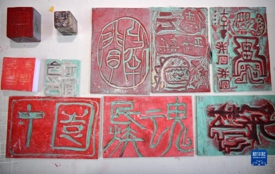 隆德縣第二中學學生制作的篆刻作品(11月30日攝)。新華社記者 王鵬 攝
