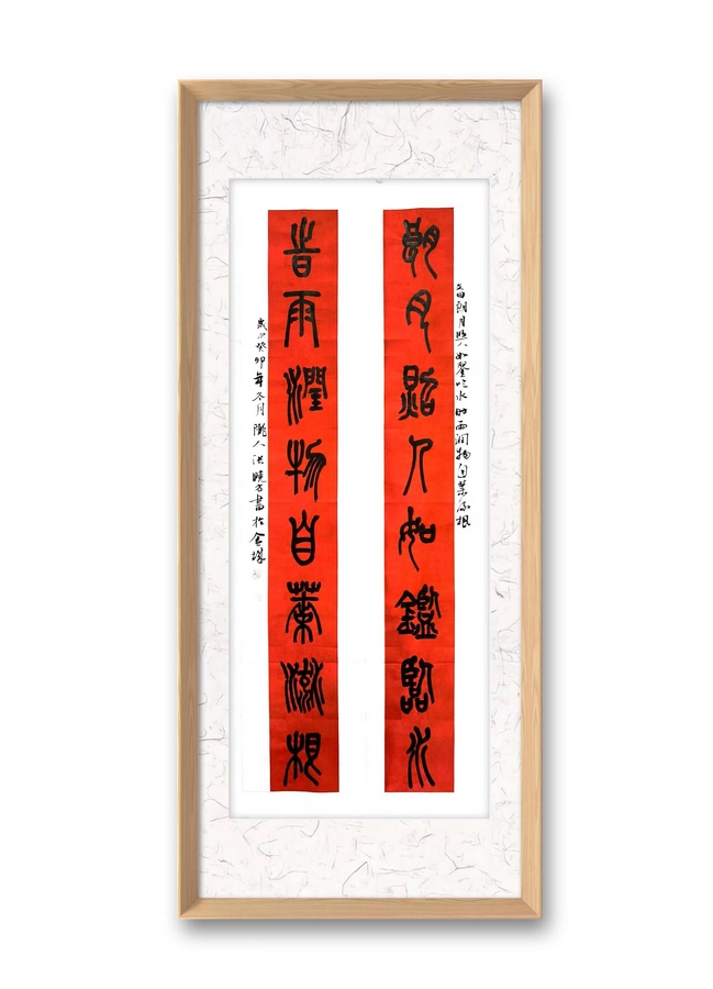 張小方先生在臨古取經的同時,也進行了大量的臨創(chuàng)轉換,以他擅長的楹聯形式創(chuàng)作了很多優(yōu)秀作品,他筆下的石鼓文楹聯不僅保留了傳統(tǒng)文化的韻味,更融入了自己的藝術感悟和用筆特點。他的作品筆力雄健,氣韻生動,既有古人的神韻,又有今人的情懷。(完)