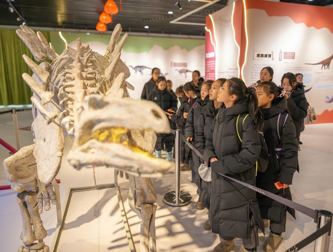 據(jù)介紹,此次展覽包括“巨龍家族”“披堅(jiān)執(zhí)銳”“‘干飯’能手”和“稱霸之路”四個(gè)部分,集中展示了內(nèi)蒙古地區(qū)發(fā)現(xiàn)的各類恐龍共52種。