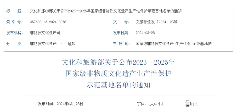 記者3月28日從文化和旅游部獲悉,在各地推薦的基礎上,經(jīng)過專家評審、實地考察和社會公示等程序,文化和旅游部近日認定99家企業(yè)和單位為2023—2025年國家級非物質(zhì)文化遺產(chǎn)生產(chǎn)性保護示范基地。