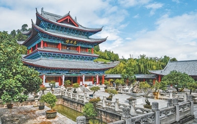 “一座土司府,半部民族史”。木府萬(wàn)卷樓前的這10個(gè)字,將邊地古城各民族交往交流交融的故事娓娓道來(lái)。獅子山拱衛(wèi)、護(hù)城河縈繞,木府的選址與布局十分講究。作為麗江木氏土司府的衙署,木府始建于明代,后來(lái)歷經(jīng)多次擴(kuò)建和修繕,形成了現(xiàn)有的建筑群布局,議事廳、萬(wàn)卷樓、護(hù)法殿等沿中軸線(xiàn)依次排開(kāi)。歷經(jīng)400多年風(fēng)雨的木府,作為麗江古城中的重要文化地標(biāo),聆聽(tīng)著各民族百川匯流向前的歷史回響。