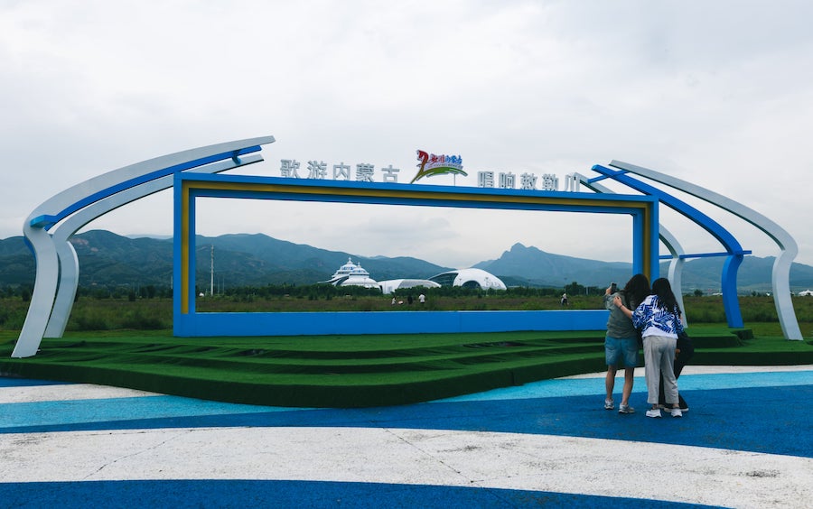 8月12日,呼和浩特敕勒川草原煙雨蒙蒙,吸引游客前來(lái)觀光游玩。北疆新聞 林則志 攝影