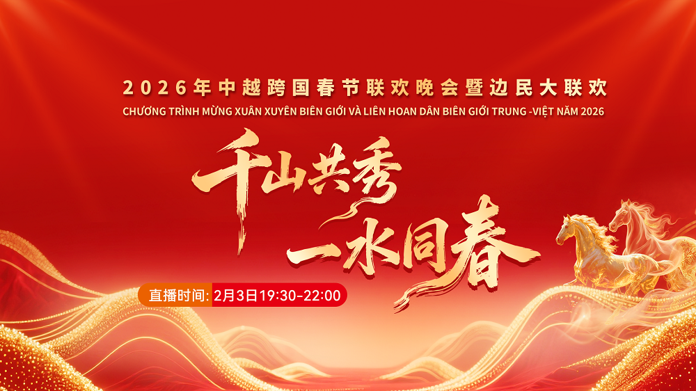 【直播簡介】2月2日至2月3日,2026年中越跨國春節(jié)聯(lián)歡晚會暨邊民大聯(lián)歡活動相繼在越南老街省、中國云南省紅河州舉行。兩國人民以文化為橋梁,以友誼為紐帶,進一步鞏固中越地方友好合作關系,構建具有戰(zhàn)略意義的中越命運共同體。2月3日晚19:30至22:00,中央廣播電視總臺央視頻將聯(lián)動25家主流媒體,現(xiàn)場直播在紅河州河口縣舉行的2026年中越跨國春節(jié)聯(lián)歡晚會,帶您沉浸式體驗兩國藝術家跨越國界的精彩文化盛宴,感受中越兩國人民“同飲一江水、攜手共發(fā)展”的深情厚誼,共度一個喜慶祥和、心手相連的跨國春夜。