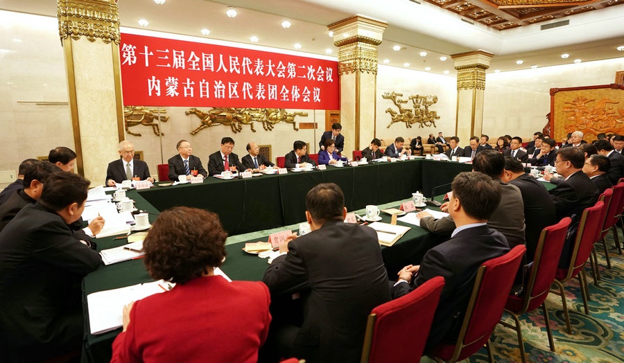 3月6日下午,十三屆全國人大二次會(huì)議內(nèi)蒙古代表團(tuán)在人民大會(huì)堂內(nèi)蒙古廳舉行全團(tuán)會(huì)議,繼續(xù)審議政府工作報(bào)告。本次全團(tuán)會(huì)議向境內(nèi)外媒體開放。