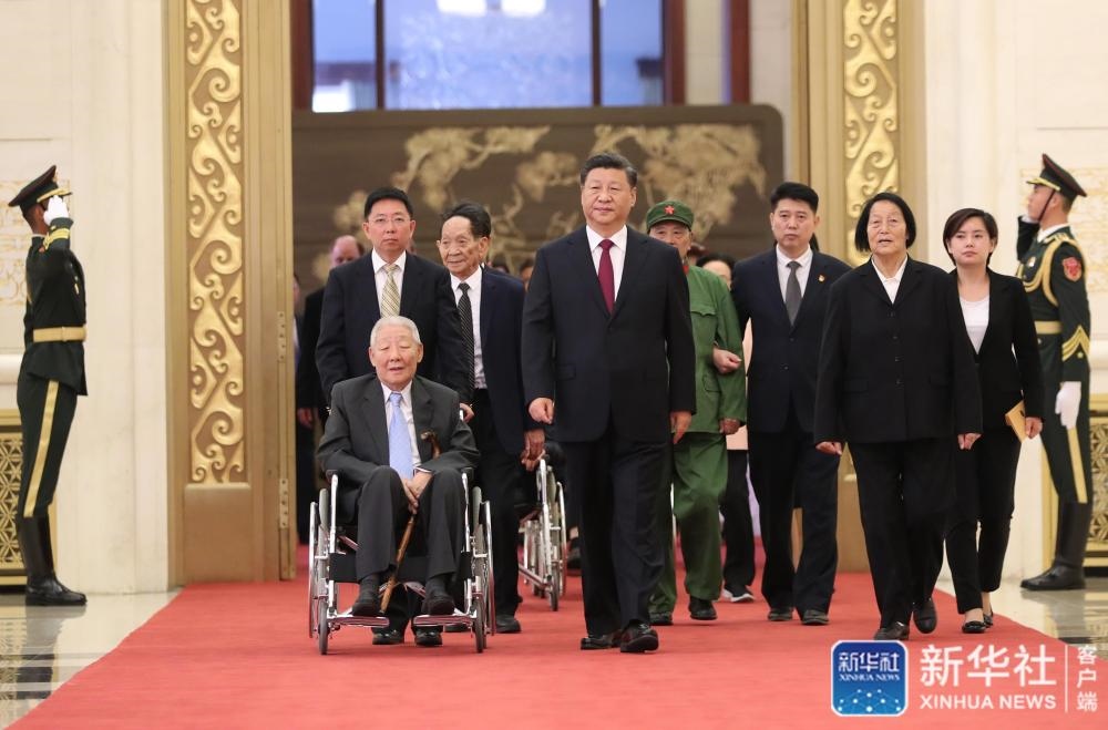↑9月29日,中華人民共和國國家勛章和國家榮譽(yù)稱號頒授儀式在北京人民大會(huì)堂金色大廳隆重舉行。中共中央總書記、國家主席、中央軍委主席習(xí)近平同國家勛章和國家榮譽(yù)稱號獲得者一同步入會(huì)場。新華社記者丁海濤攝