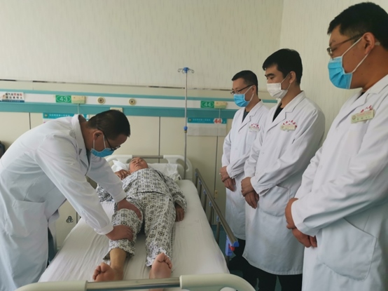骨一科喬強主任為關(guān)節(jié)置換術(shù)后患者功能鍛煉。