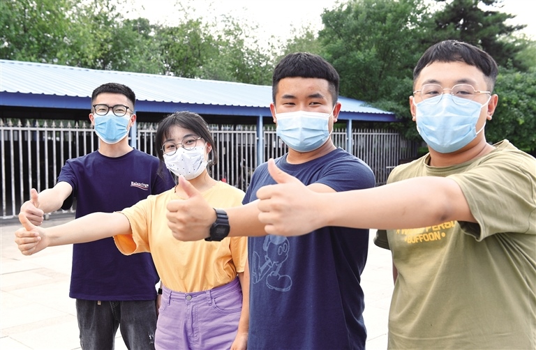 7月6日,提前到高考考點(diǎn)查看考場的首府高三學(xué)子為自己加油鼓勁。
